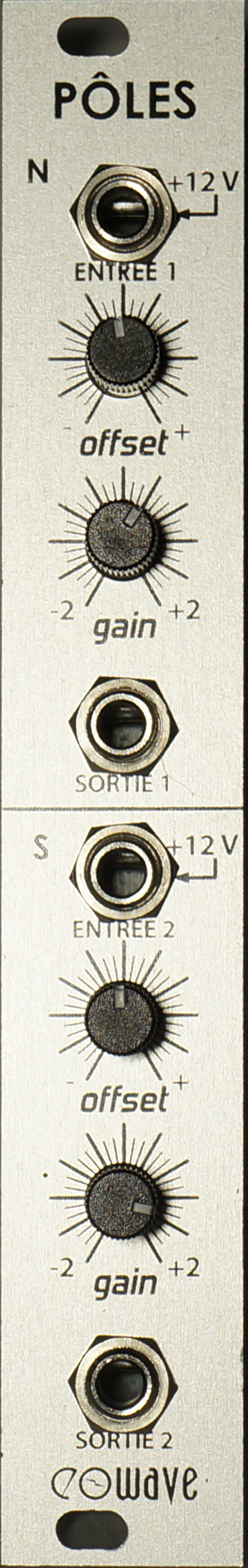 with dual amplification, attenuation, inversion and offset adjustment. the module poles offers 2 separate channels. poles enables to attenuate, invert & amplify a signal. it is very useful to adapt different