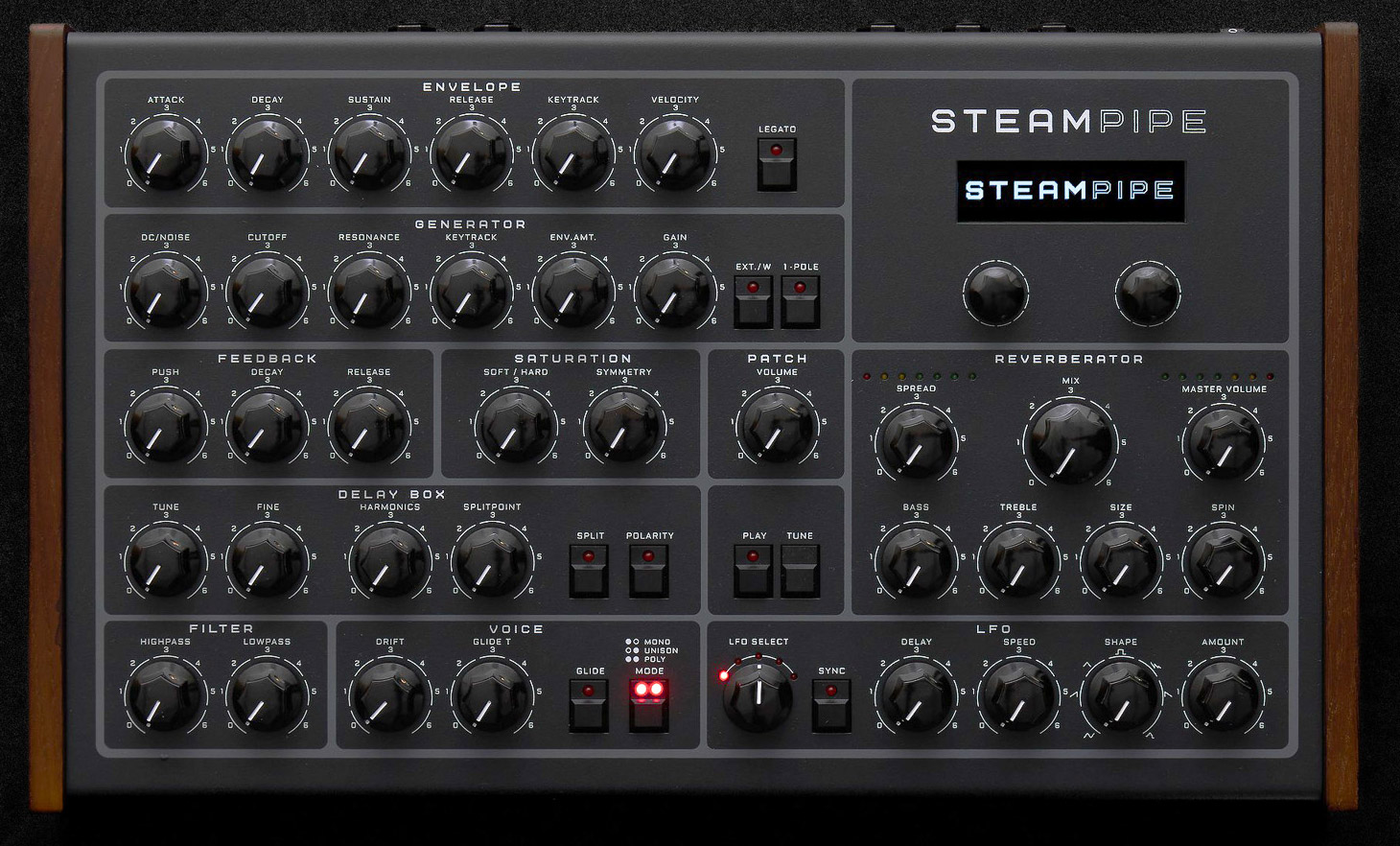 the steampipe is an 8-voice polyphonic synthesizer, but it has no conventional oscillators. instead, it mimics the way sound is created in wind and string instruments and it is fine-tuned to create a wide range of sounds. the steampipe is optimized for performance with wind midi controllers and it works great with any midi keyboard.