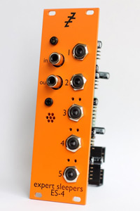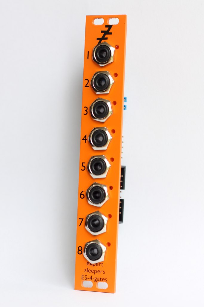 the es-4 gate expander is a eurorack module which works in tandem with the es-4 to offer 8 on/off outputs for use as gates, triggers, clocks etc. up to five es-4 gate expanders can be attached to one es-4 - one