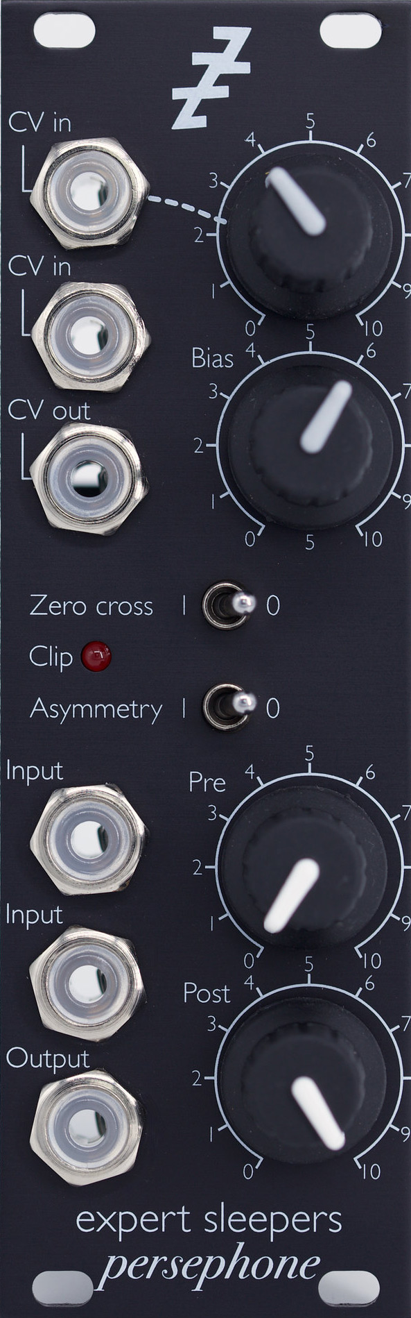 'persephone' is a vca (voltage controlled amplifier) using a discrete jfet as the gain element. the jfet can be tastefully (or violently) overdriven for saturation/distortion effects.