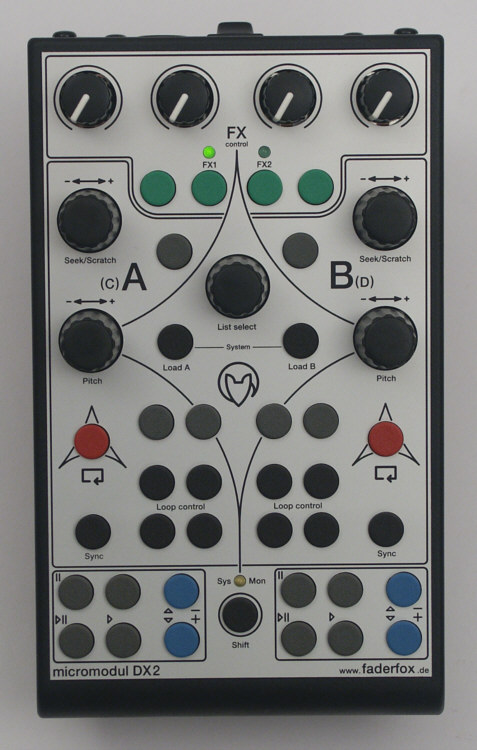 micromodul DX2 is a small DJ controller that contains everything you need for computer-based mixing if you prefer to use an external