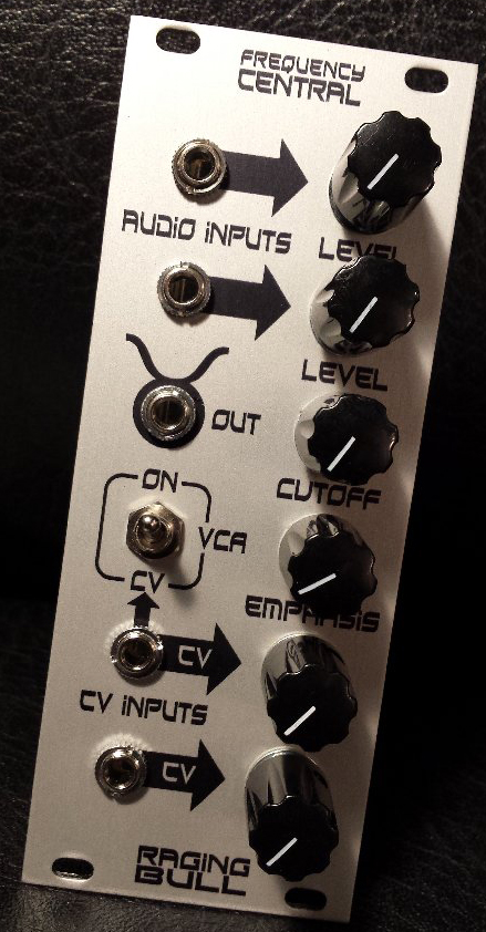 a big part of the sound of the taurus was the way in which the vcf interfaced with the vca, so on raging bull the vca is always in the audio path. a toggle switch allows you to select 'always open' or cv