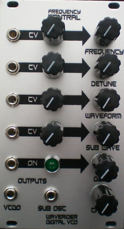 waverider digital vco - here we go! now in production, wavetable vco with tons of features: cv'd interpolating waveforms, cv'd subosc waveforms and octaves, cv'd glide, bitcrushing and more!