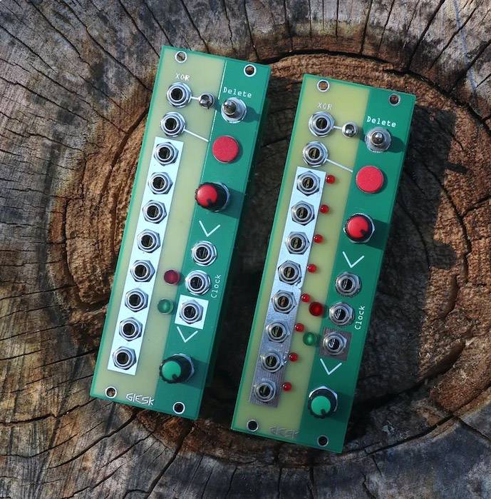 gieskes developed it because they needed a sequencer that works good for drums, especially with the vu-perc modules. the vu-perc module responds to gate signals, and they hit harder or softer depending if the voltages of the gate signal is higher or lower. this module has a cv input that can be used to modulate the voltage that comes