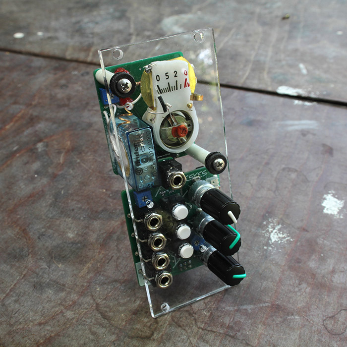 percussion with a vu meter and a relay for eurorack