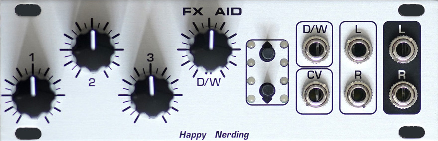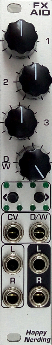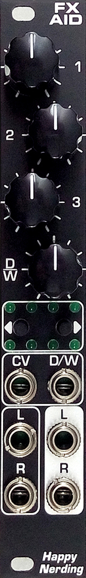three effect controls plus analog dry/wet control with dedicated cv input.