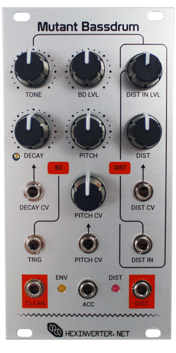 the mbd is really two modules in one: a feature-rich analogue bassdrum synthesis module and an aggressive voltage controlled distortion effect. the distortion features uv purple leds as hard clipping diodes and