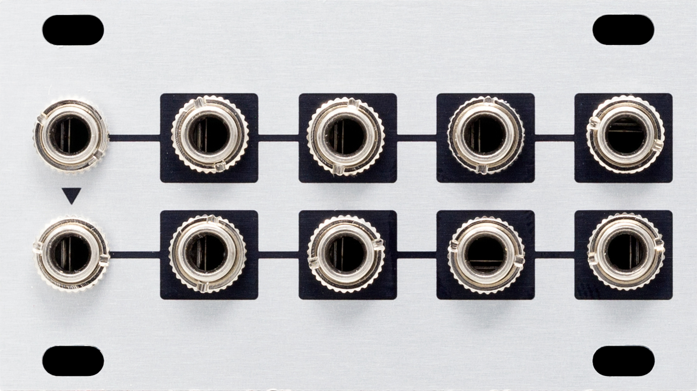 top section normalled to bottom section. this means that one audio or cv signal can be duplicated across eight outputs, or two separate signals can each be duplicated across four outputs.