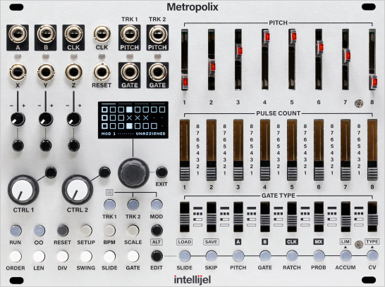the intellijel metropolix is a unique and powerful multitrack eurorack musical sequencer. with an abundance of hands-on, tactile controls and a wealth of modulation possibilities (both internal and external) you can quickly and easily create infectiously musical sequences that are never boring. even the simplest melody can be brought
