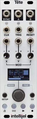 tête expands our touch surface, tetrapad. capture your gestures, save them, play them back with the tête's looper or step sequencer; modulate your physical input with external cv from your modular; and finally sync all of your motions with the internal or an external clock. you've never touched anything like it.