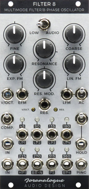 key to filter 8's performance is the innovative resonant feedback circuit. by increasing the resonance, all outputs will resonate at the filter frequency, without any low frequency response loss. at higher resonance levels, self-oscillation is achieved, turning