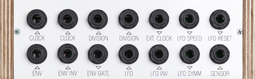clocks, the lfo and the envelope can be hooked up to analog synthesizers and their respective clock, cv and trigger inputs.