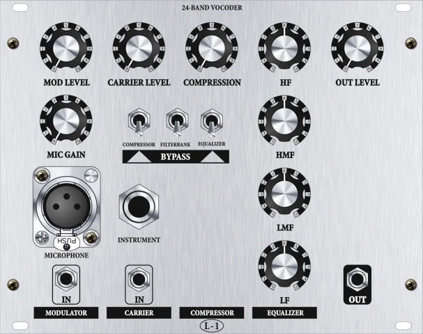 this is full analogue 24 band vocoder. hi-quality that corp. chips inside. microphone preamp and compressor are for voice processing. sound from modular synth or other instrument is used as carrier.