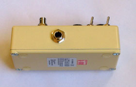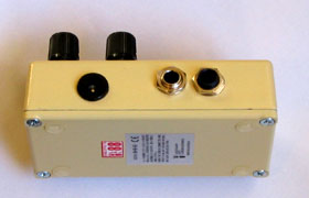 on the left side, there are jacks for an ac adapter, the output and cv pedals. the cv pedal jack can be connected to a cv pedal for "adjust" alterations. if you have a foot cv