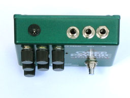 on the top side, there are jacks for an input, an output, a cv pedal and an ac adapter. the cv pedal jack can be connected to a cv pedal for "freq" alterations. if you have a foot cv pedal, you can control the