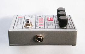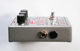 from the left; "level", "tone" and "gain". "level" controls the overall output level when the effect is on. "tone" controls the tone (turn right for enhancing treble.) "gain" controls the overall gain level