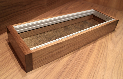 3u solid wood eurorack flat skiff with tiptop audio 84hp z-rails (black for the black, silver for the brown).