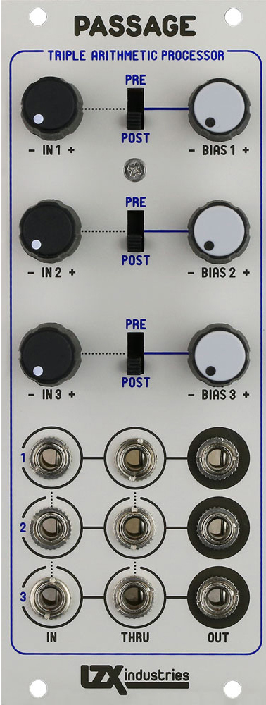 traverse new sights in signal mixing and processing! passage is a triple channel wideband signal mixer and voltage processor. the signal path is suitable for mixing any type of signal, including video, audio