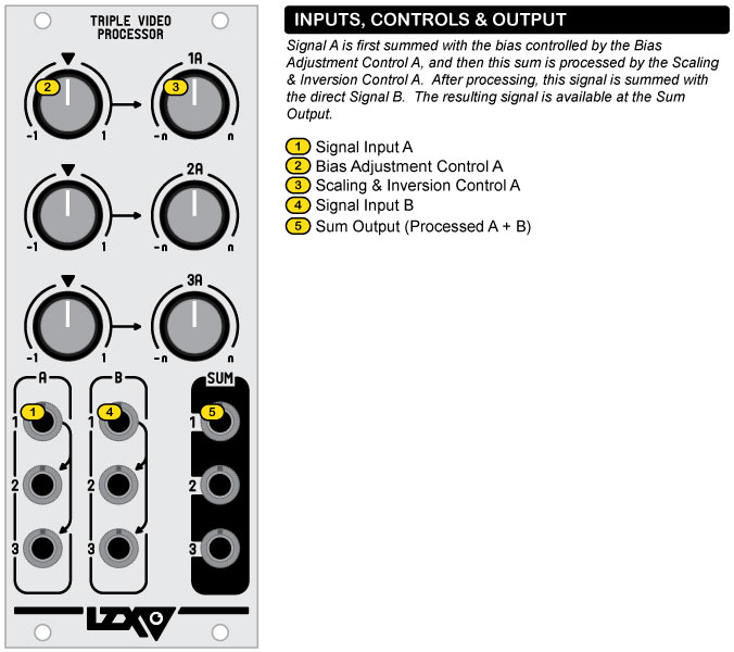 final output mix. triple video processor was designed specifically to address common use case scenarios within the video synthesis system. since the bias is applied to the input signal before it’s scaling &