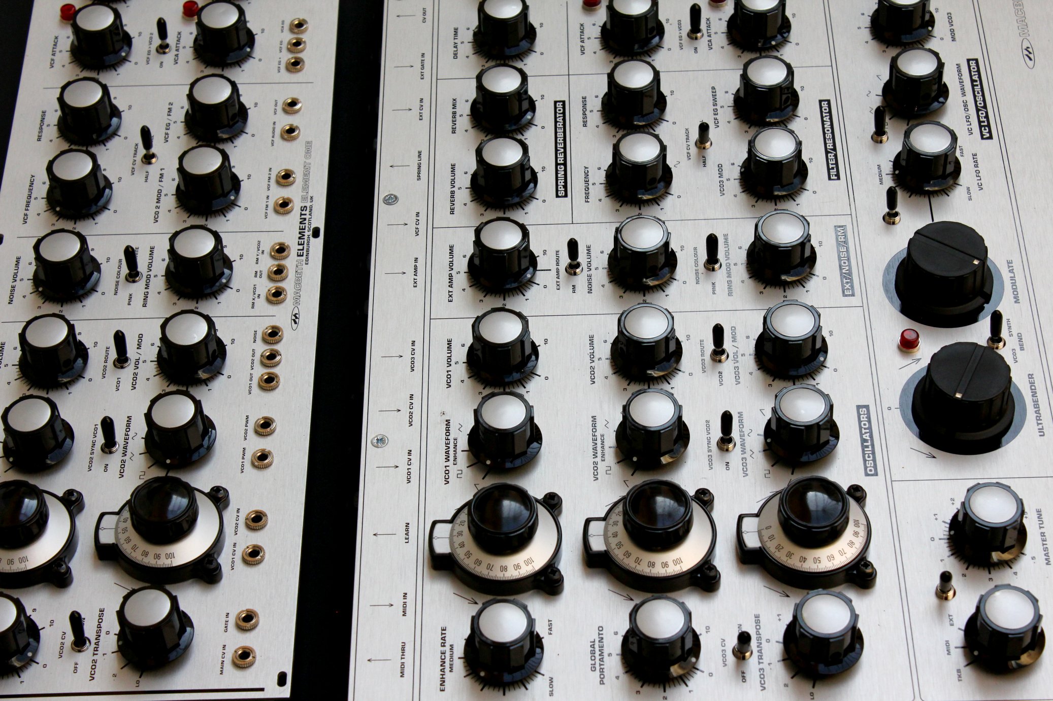 instruments are laid out- macbeth views this differently. historically, mr macbeth has designed instruments with large controls- basing an emphasis on user 'playability' – coming from the old school himself-