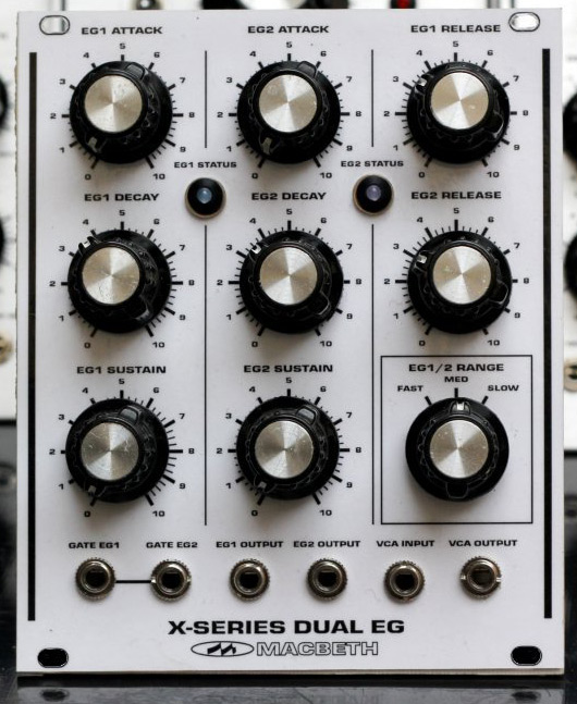 employs a classic adsr design. using totally discrete parts- the switch on timing for this module can be very fast. the x-series dual eg was designed to have three different ranges of operation- fast (which
