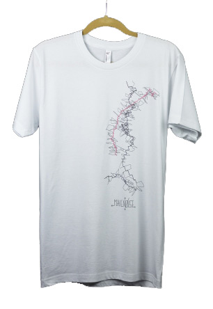 screen printed in asheville, nc. usa on american apparel, 100% cotton, black standard t-shirts. light weight, soft and fitted. graphic by zach smith shows the east and west coasts intertwining and becoming