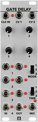 the quad gate delay is a 4 channel tempo-synced rhythm generator and logic delay. there are 3 switchable time modes: milliseconds, tempo synced (unquantized), and tempo synced (quantized) with additional