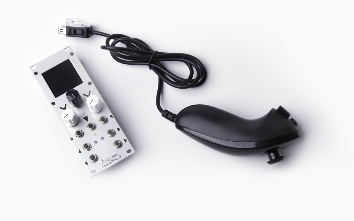 the cv graphic can be connected to a wi nunchuk, please use an original wii nunchuk (nintendo) as some of the cheap 3rd party ones do not work properly with this module's specs. you can connect the wii nunchuk