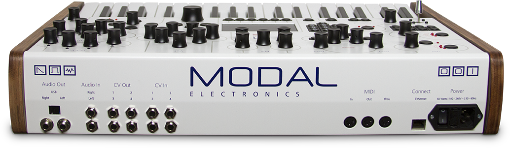 ethernet port to connect your 001 to your network and enable updates via the internet (no more midi sysex dumps) and access to the modal electronics cloud features