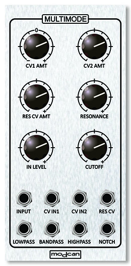 multimode filters are nothing new but this one takes its inspiration from some of the earliest examples. like the arp 2500, eml 101 modular and emus uaf filters before the modcan multimode uses discrete otas in place of ca3080s or the more recently popular ssm2164. the result is a rawer sound with a lot of resonance. our version of