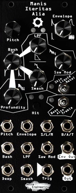 manis iteritas alia is a voice based on the architecture of basimilus. it was designed to be more gritty and aggressive by using only sawtooth waves that are manipulated, modulated, and distorted through a rethought interface. manis iteritas alia is suitable for