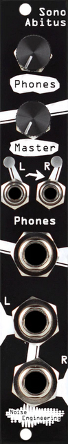 sono abitus is a high-quality output module. it has a stereo pair of eurorack-level ⅛" inputs that feed a pair of ¼" trs jacks for line output and a ¼" headphone output. the headphone output and line outputs have separate level