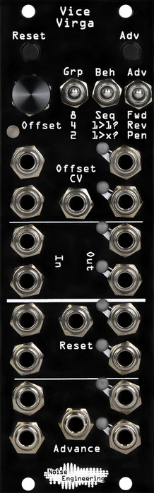 patch arranger and performance tool, vice virga has loads of switching control options. whether you want to chain sequencers, swap outputs on an oscillator, remix a trigger pattern, or mix up every connection in a patch just to see what happens, vice virga