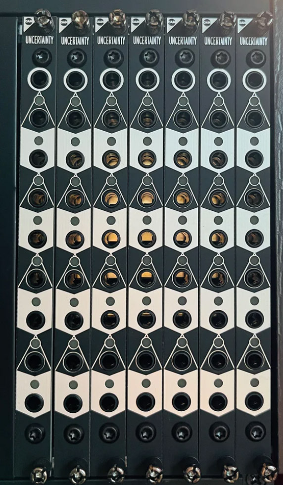 as of march 2023, uncertainty has its second official firmware, vu meter. just a perfectly normal vu meter where each led gets its own gate output. wait, what? no one's ever done that? but it makes gated effects and modulation so easy. seriously, try it. it's