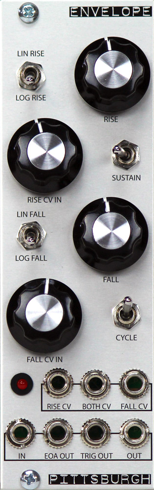 the pittsburgh modular envelope is a complex multi-stage envelope generator with voltage controllable rise and fall. using the sustain switch to toggle between modes, the envelope functions as either a 2 stage