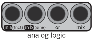 the analog logic is a two channel mixer with a standard unity gain mix out as well as an analog 'or' logic output. the 'or' logic outputs the current highest positive only voltage from either of the inputs