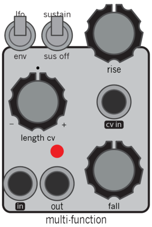 the multi-function section is a voltage controlled slope generator. this flexible circuit can function as a voltage controlled envelope, lfo, oscillator, slew, envelope follower, and more.