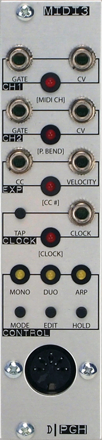 the midi 3 is our third generation midi to cv converter packed with a robust list of features. it includes a complete set of mono and duophonic midi response modes, assignable cc and dedicated velocity outputs,