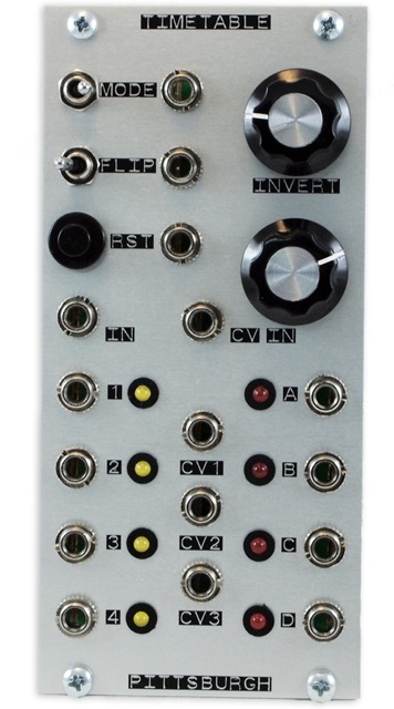 the pittsburgh modular timetable module is a clock divider / pattern & cv generator. the primary intention of timetable is to provide timed gates, both predictable and inconsistent. in practice, you can use
