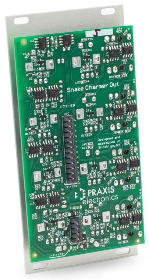 the new snake charmer out is an eight channel eurorack to +4dbu balanced line level converter.