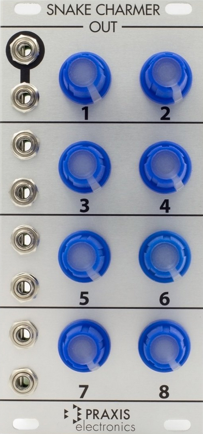 you can now control eight balanced, line-level outputs from your eurorack system. space is a premium for eurorack systems, and snake charmer out gives you the most outputs in only 12hp.