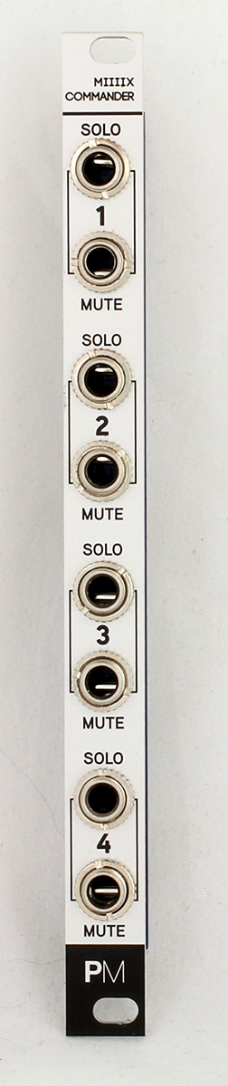 commander features mute and solo cv inputs for each of the miiiix channels to voltage control muting and soloing. pulse signals are recommended for accurate timing but alternatively any signal that rises