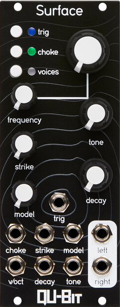 surface is a multi-timbral physical modeling voice capable of emulating the sonic qualities of acoustic instruments or morphing into otherworldly synthetic textures. physical models contain plucked strings,