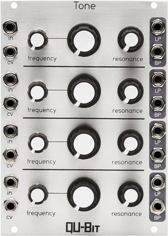 tone is a quad, voltage controlled filter with low pass and band pass outputs. its four channel architecture enables the intuitive patching of shimmering, polyphonic textures.