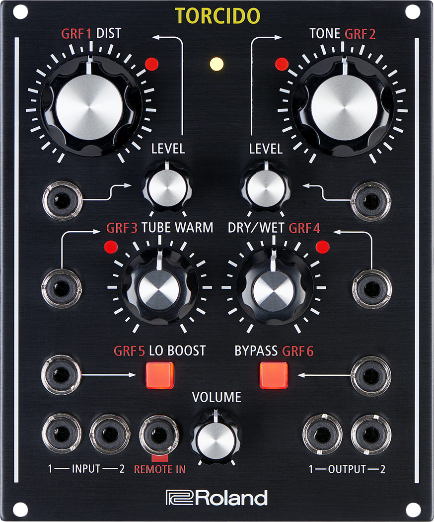 torcido is a versatile modular effect combining classic roland distortion sound and unprecedented control and flexibility. able to be used as a tabletop unit or as a eurorack module, and with an array of cv/gate