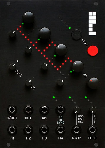 features: four through zero oscillators harmonic intervals, fine tune, or fixed frequency options for each oscillator amplitude or frequency/v/oct cv inputs for each oscilator