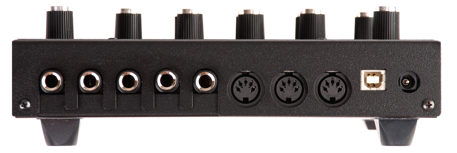 i/o: usb 2.0 (type b receptacle), midi in, midi out/thru, poly chain out, audio outs 1/left, 2/right, 3, and 4 (¼" unbalanced), ¼" headphone out