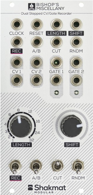 basicly, the bishop miscellany is a dual stepped cv / gate recorder. it means it records two cv’s and two gates on steps a bit like an analog shift register but with a lot more.