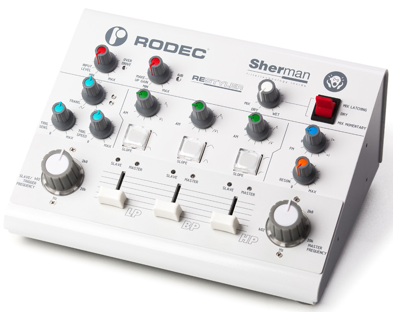 | the rodec / sherman "restyler" is the result of great collaboration between two high-end analogue belgian manufacturers! this unique masterpiece is no regular effects unit orfilter bank ... it's a one of a kind "restyler" the restyler redefines the dynamic, punch, groove and sound of your music, instrument or musical production. it can be used bydeejays, musicians, producers, remixers & musical freaks worldwide.