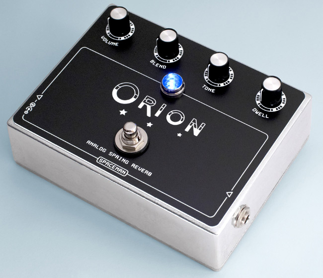 orion is a true analog spring reverb, and at only 6¼ by 4¾ inches, it's the smallest real spring reverb pedal this solar system has ever seen. finally, real analog reverb that will fit on your